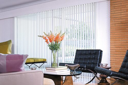 While probably the most cost-effective treatment for large openings, vertical blinds are ideal for almost any opening. We make most vertical blinds right here in our factory and offer a large selection of vinyl, fabric, wood and faux wood louvers with a limitless array of colors and patterns. SCHEDULE A FREE CONSULTATION